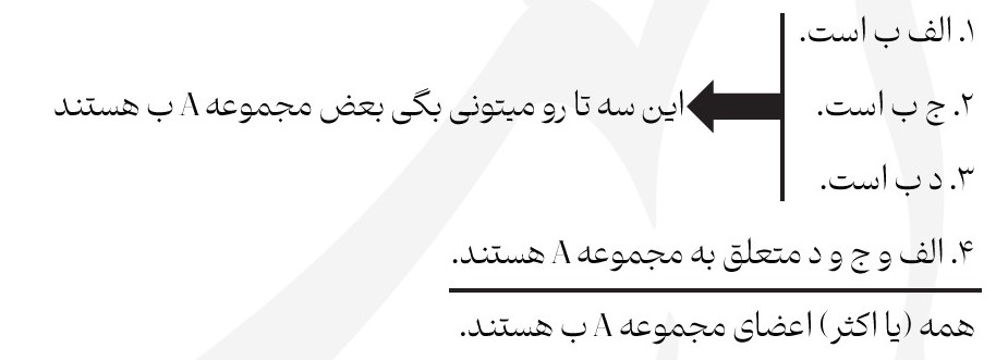 اینجا اکثر سور جزئی (بعضی) حساب میشه ولی چون بزرگ تر از مقدمه است استقرای تعمیمی داریم.